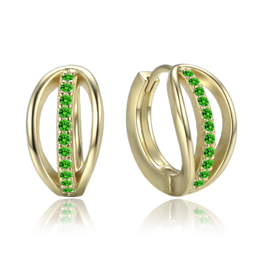 8596300109205Elegant gold-plated silver earrings MINET with green zircons in a timeless circular design. Delicate yet striking, they complement any outfit, and thanks to high-quality 14K gold plating, they will shine during everyday wear as well as special occasions. More