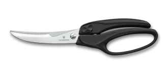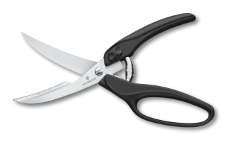 7611160705440Professional poultry scissors Victorinox with a comfortable synthetic handle and hardened curved blades made of stainless steel. Ideal for poultry bones and joints, equipped with a safety lock and a spring mechanism for easy use. More