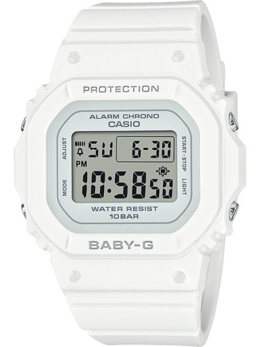 4549526362538Stylish and durable women’s watch in an iconic square design. Baby-G features a stopwatch, timer, alarm, and 100 m water resistance – perfect for an active lifestyle.